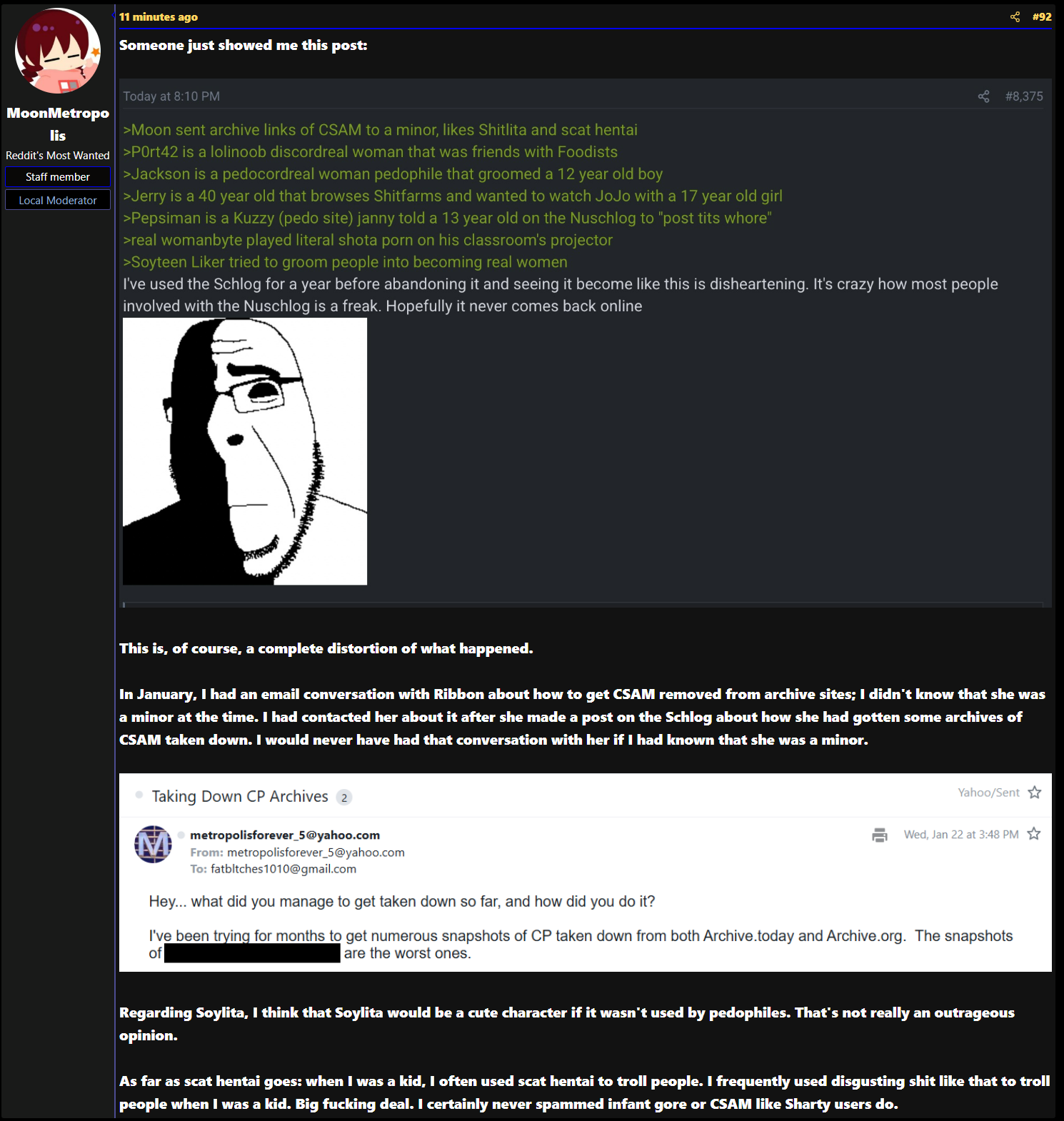 geg, derailed a soycuck raid thread and it got deleted by the jannies despite having a full dox in it