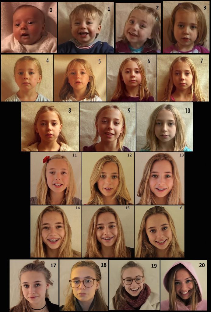 For me it's 2-10. She has long hair and a cute face at 2. She's still cute at 10.