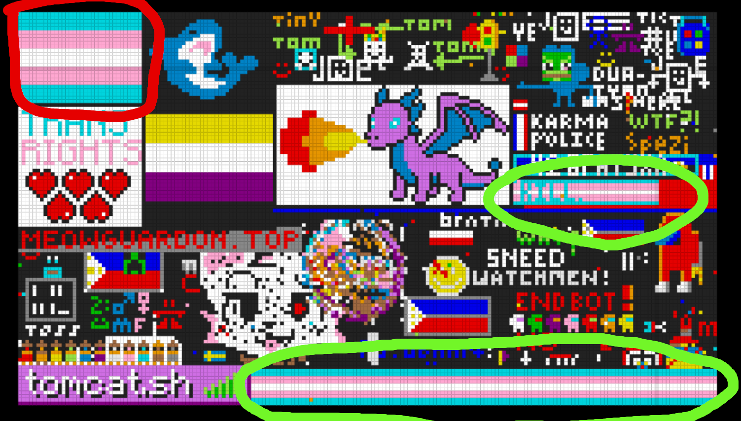 Yes, that's a good idea. It doesn't let me paint anywhere except the two trans flags that I took the liberty of circling in green. I think we should replace those two with the MAP flag. There's only person coloring in the trans flags, so it should be easy. Not being transphobic, it's just that we're more oppressed and obviously deserve the recognition much more. Maybe we should even do half-trans, half-MAP, it might cause extra seethe with half the effort (Edit: there's no subreddit for ts? There won't be any seethe or reaction) https://ytdraws.win/