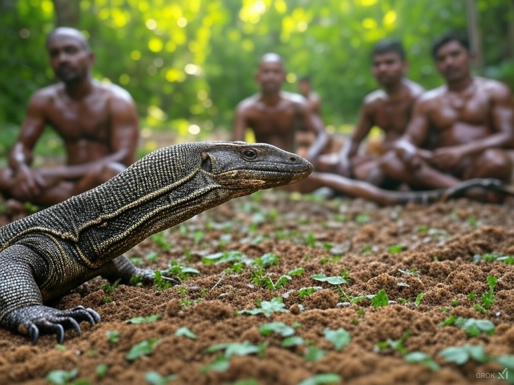 "As the human regains consciousness, they slowly open their eyes to find themselves in a dimly lit underground cave. The air is cool, and the ground beneath them feels uneven, covered in patches of grass and small rocks. The faint glow of bioluminescent plants provides just enough light to see the walls of the cavern, which seem to stretch endlessly into darkness.