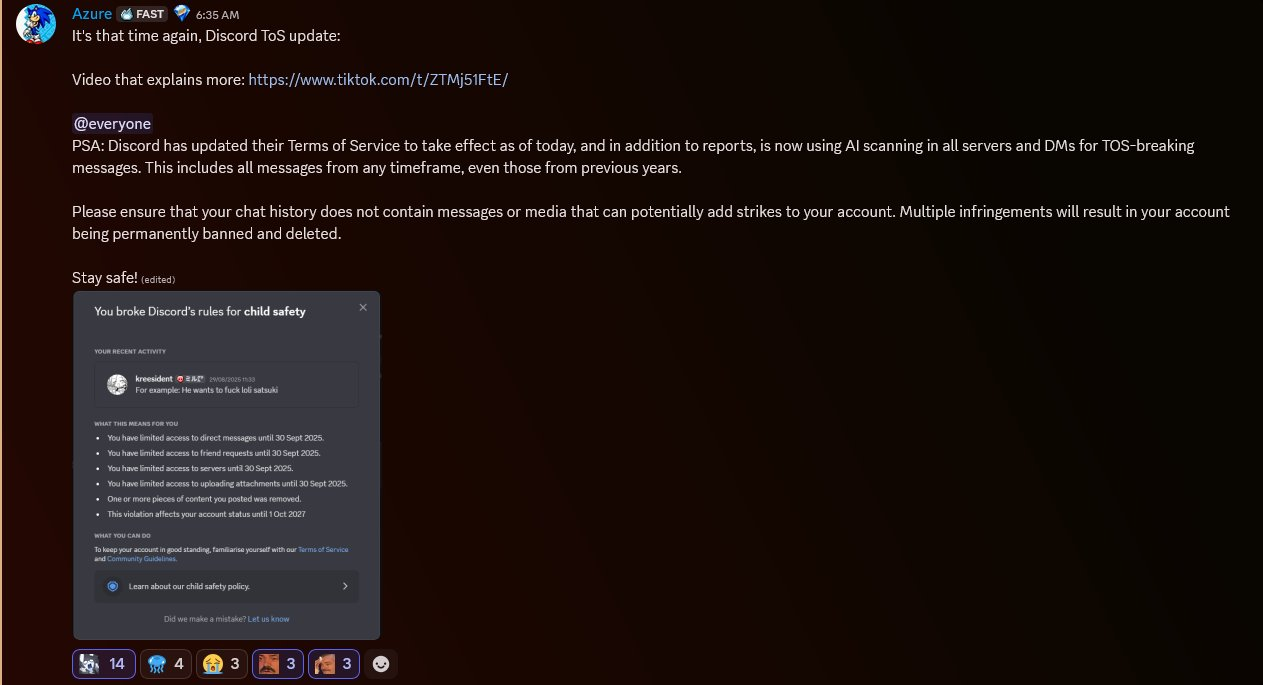 >>4696 yeah i know discord is doing a huge banwave it sucks