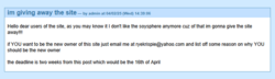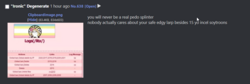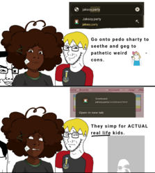 >If you are here to pass judgement on these websites, I do ask that you show a little bit of leniency towards Soyjak.party; despite their life ruination and trolling operations, they have, for the most part, have been very helpful in stemming the current issue at hand, while also reversing previous course in acting as a Child Exploitation nexus for various Child Exploitation groups under previous administrator @kuz . Likewise with Kiwifarms, if you do host them as well; while never being a place of Child Exploitation, I understand that some people can view the Life Ruination as "Problematic". It serves a purpose that helps stop worse people from getting away with bad things, and the moderation/administration along with the community has always self policed itself.