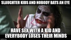 >Hates children, child gore